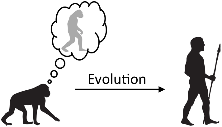 Wenn sich Entwicklungen über lange Zeiträume zu sehr weitgehenden Erweiterungen des Verhaltens kumulieren, werden die damit verbunden körperlichen Veränderungen deutlich sichtbar. Dann schlagen sie sich auch genetisch nieder, damit sie an die Folgegeneration weitergegeben werden können. Die genetischen Veränderungen im Rahmen der Evolution entstehen auf die gleiche Weise wie jede noch so kleine Weiterentwicklung des Verhaltens. Das sieht die Wissenschaft mit der Evolutionstheorie nicht so. Die Wissenschaft unterscheidet zwischen