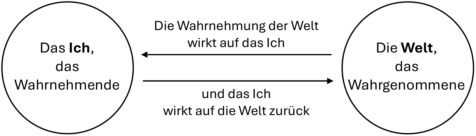 Das Ich nimmt "die Welt" wahr. Im Folgenden geht es um die Interaktion zwischen Ich und Welt - zwischen dem, was wahrnimmt und dem, was wahrgenommen wird: