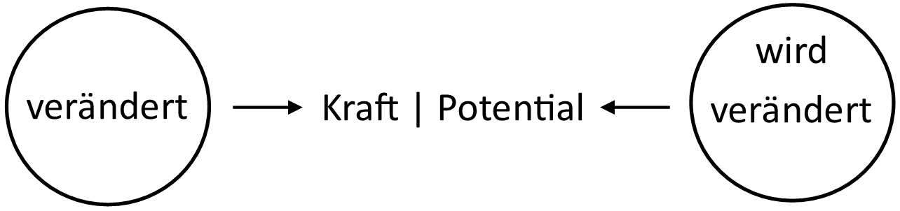 Das verändernde Element übt eine Kraft auf das andere Element aus, welches verändert wird. Die Kraft erzeugt ein Potential. Ein Potential ist das Bestreben, den Zustand zu ändern.